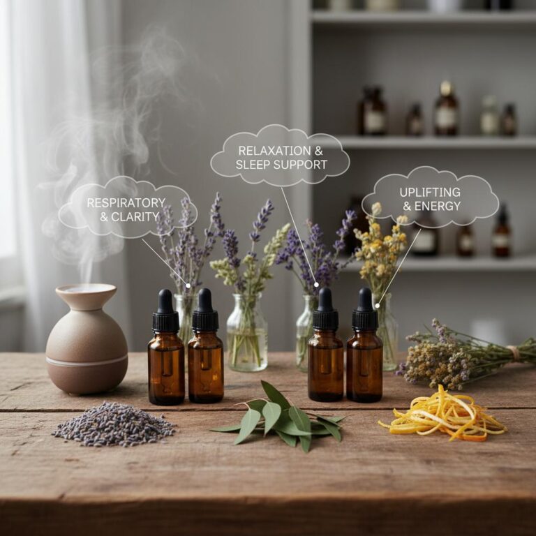 In der Erkältungszeit sind Nadelhölzer wie Weißtanne oder Kiefer sowie Eukalyptus und Thymian (Linalool-Typ) die Mittel der Wahl. Sie wirken schleimlösend und erleichtern das Durchatmen. Ein Brustbalsam – hergestellt aus einem pflanzlichen Basisöl und wenigen Tropfen des ätherischen Öls – kann hier Linderung verschaffen. Beachten Sie jedoch, dass stark mentholhaltige Öle bei Säuglingen und Kleinkindern Atemnot auslösen können; hier sind sanftere Alternativen wie Thymian-Myrte-Balsam nötig.