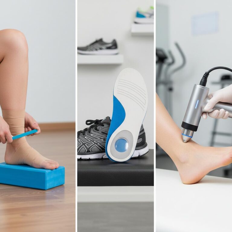 - Ergänzung: Einlagen entlasten akut, und Stoßwellentherapie kann chronische Verläufe durchbrechen, ersetzen aber nicht das tägliche Üben.