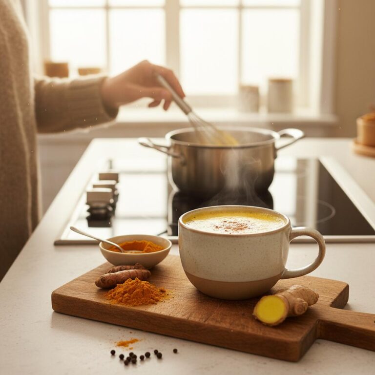 - Hochwertiges Fett (Träger): Kokosöl, Ghee oder Mandelöl lösen das fettlösliche Curcumin für den Transport ins Blut.
